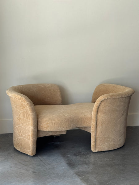 SCULPTURAL OAK + BOUCLE SOFA CIRCA 1950S