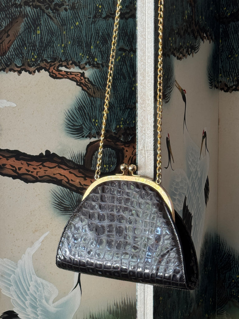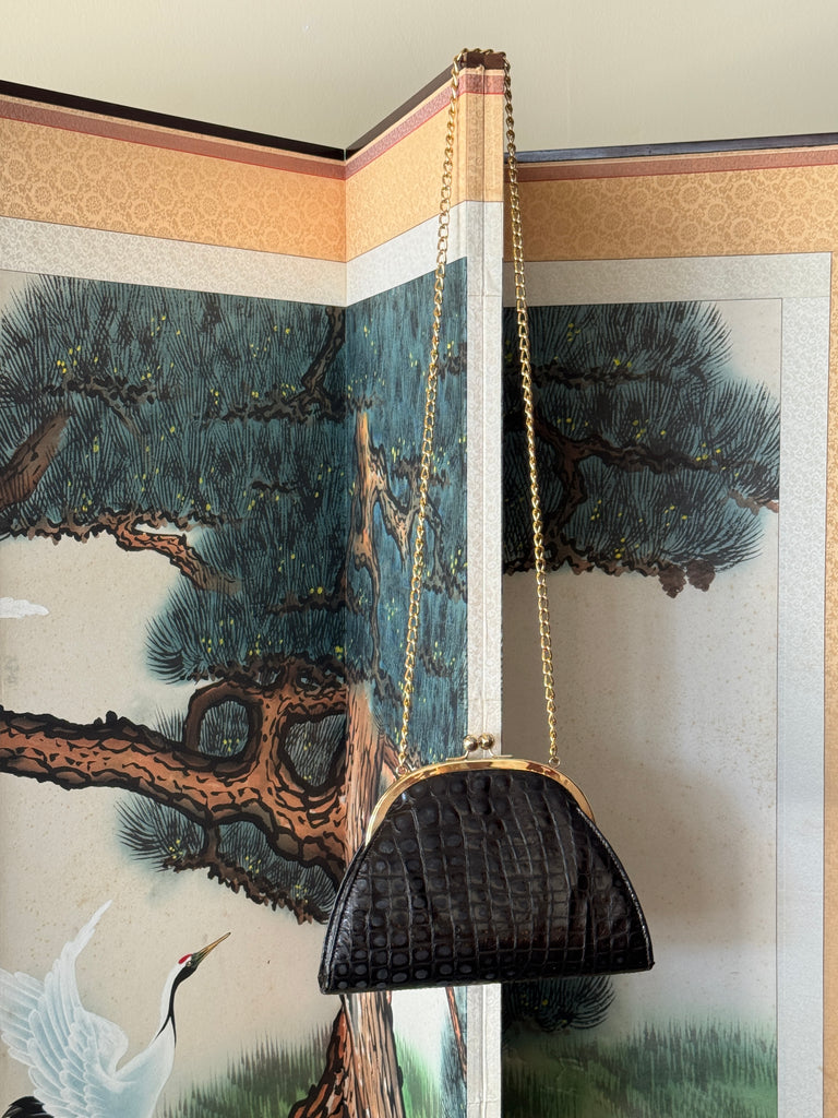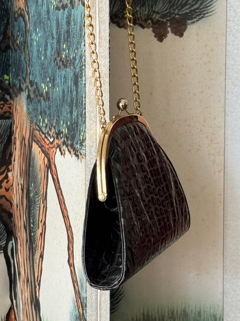 Measurements: purse 11”L x 2.5”D x 8” H x 49” strap length