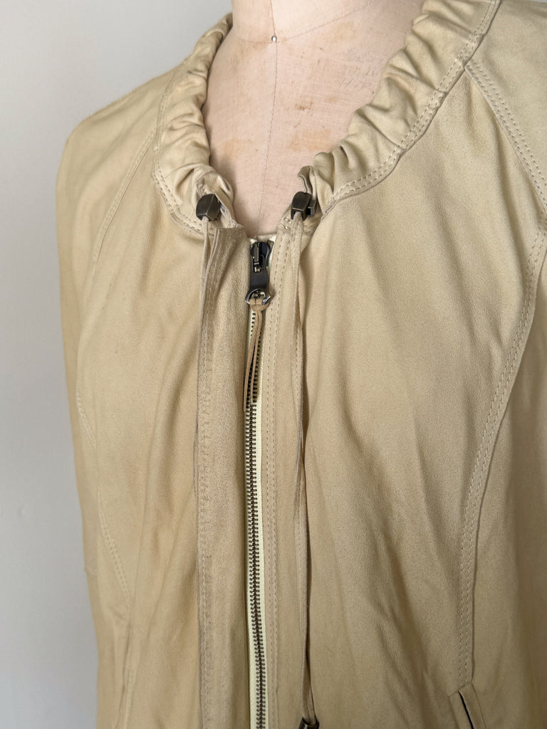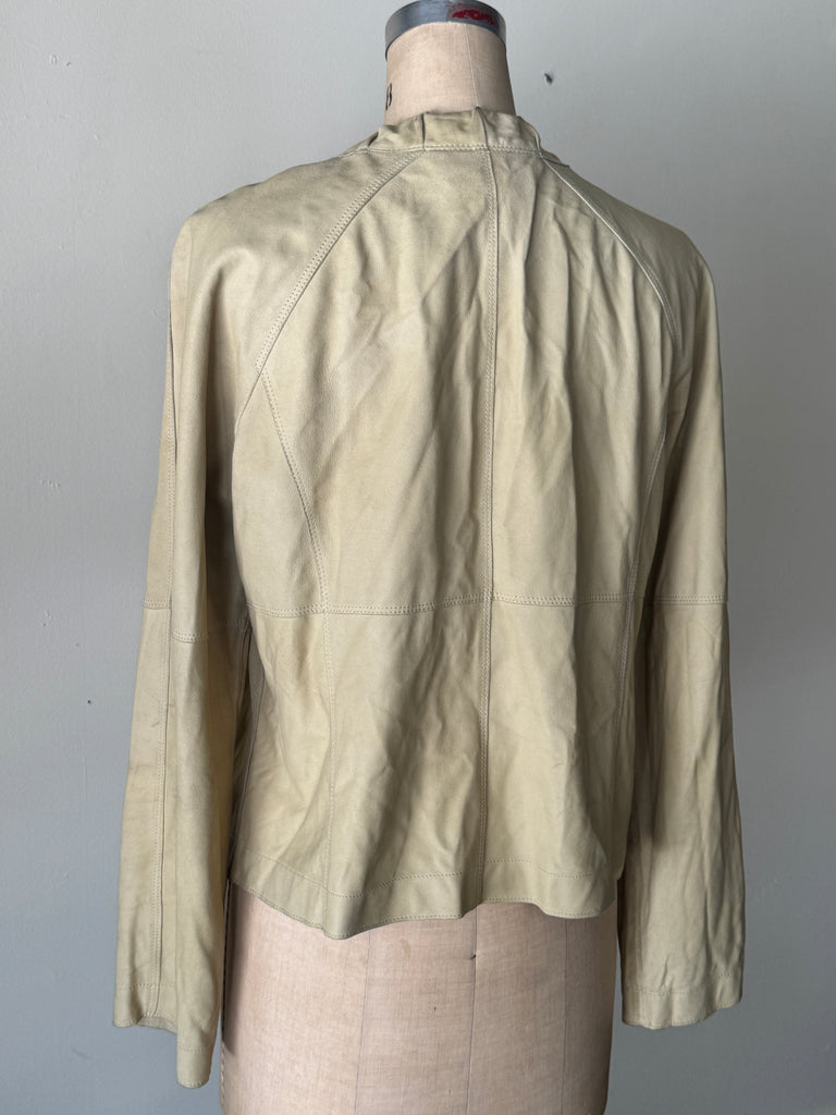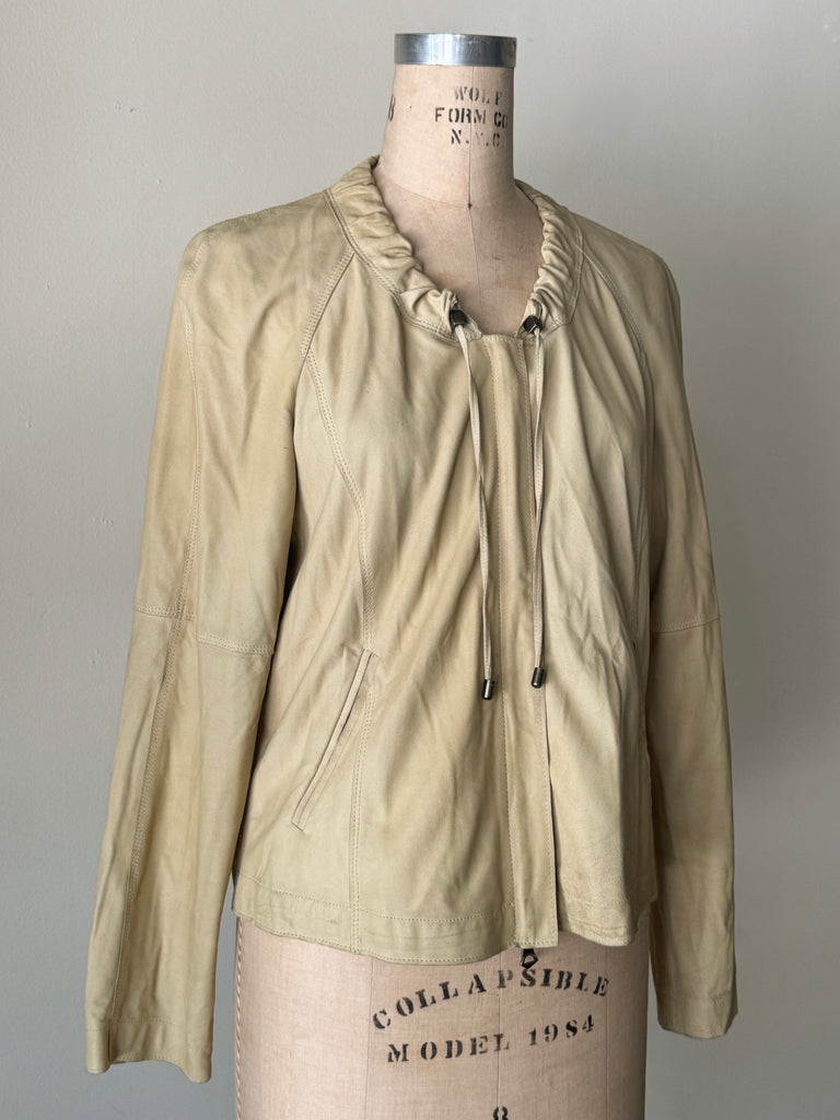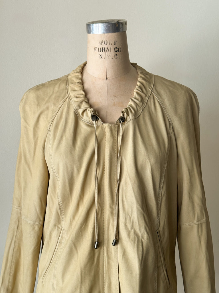 Carpenter.StudioFeatures drawstring neck, zip front, two pockets in the softest buttery tan leather.