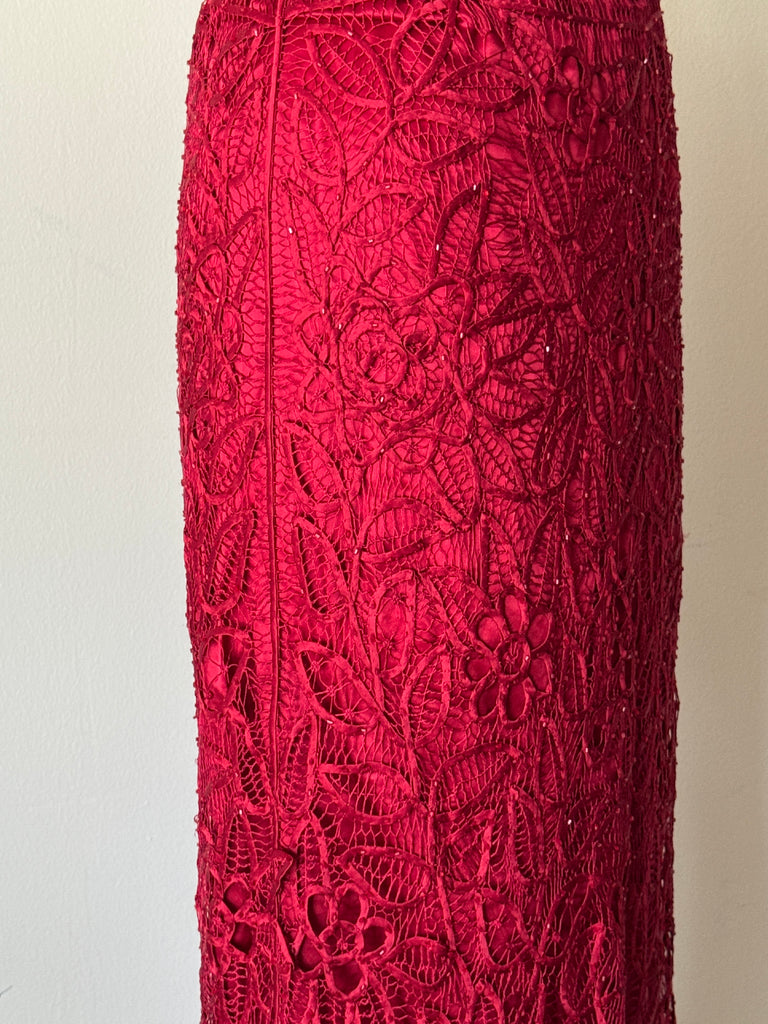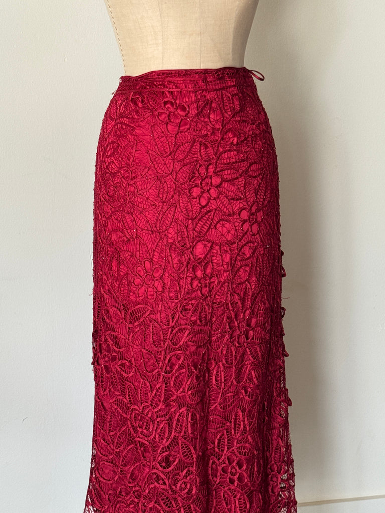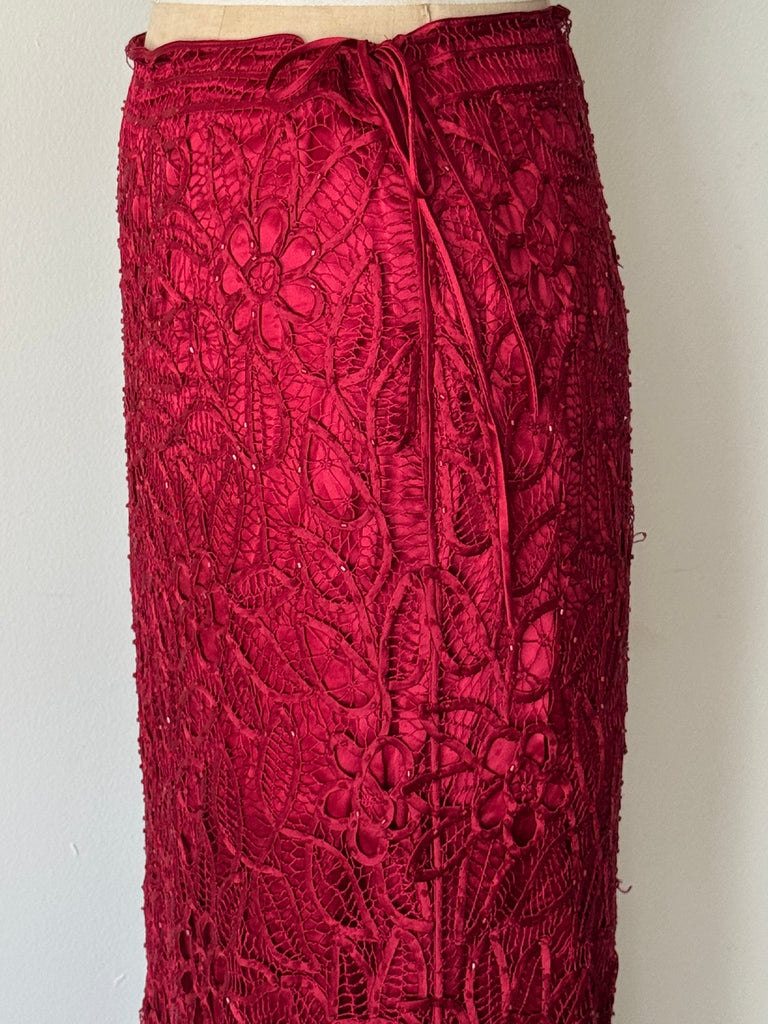 Vintage Cherry Red Silk Soutache Skirt