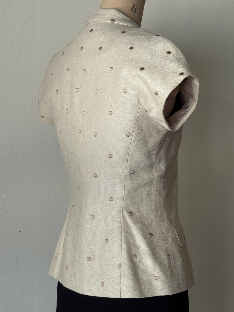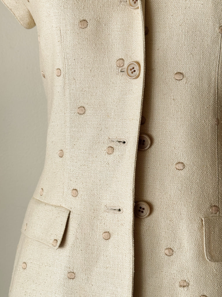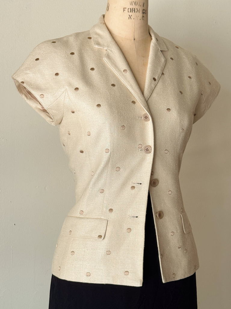 Vintage Raw Silk Embroidered Polka Dot Button Blouse