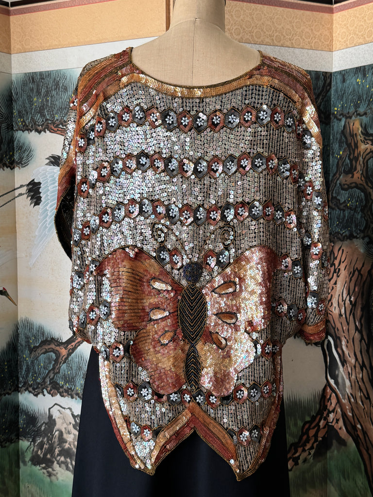 Accepting Silk lined butterfly sequined blouse. In excellent vintage condition.
