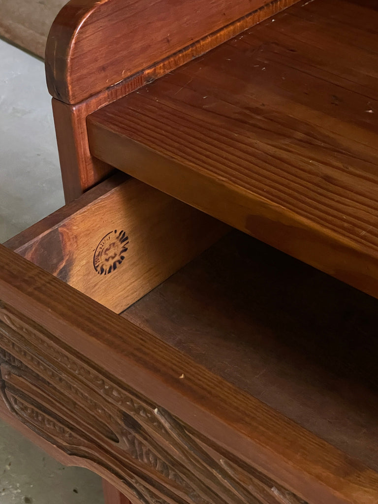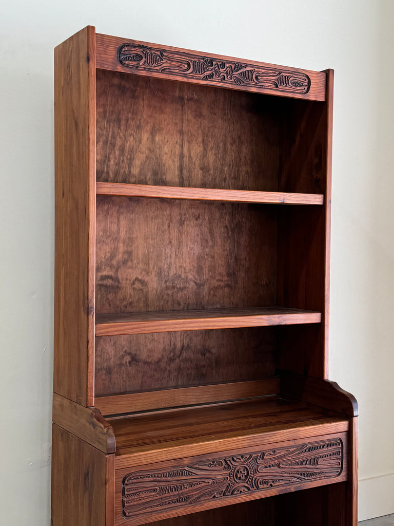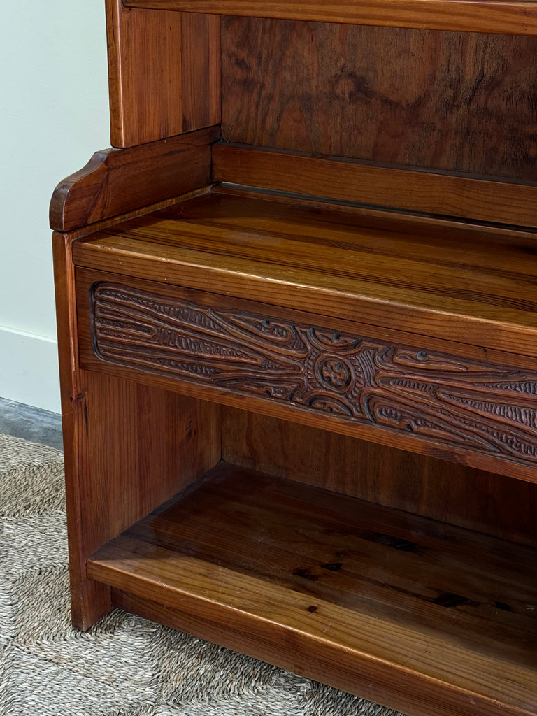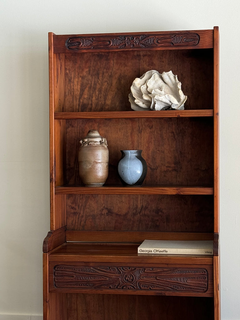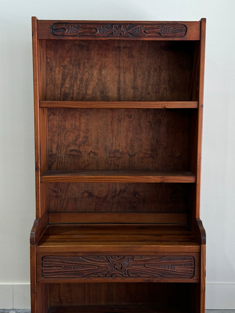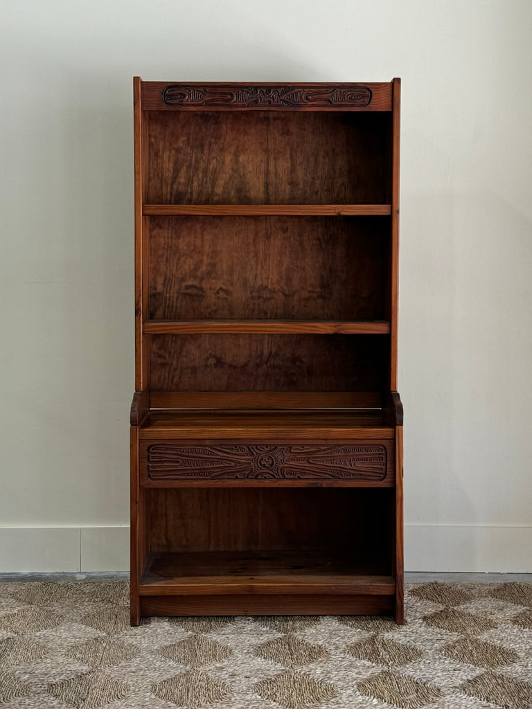 CARVED PINE BOOK SHELF BY AQUARIUS INT. CIRCA 1970