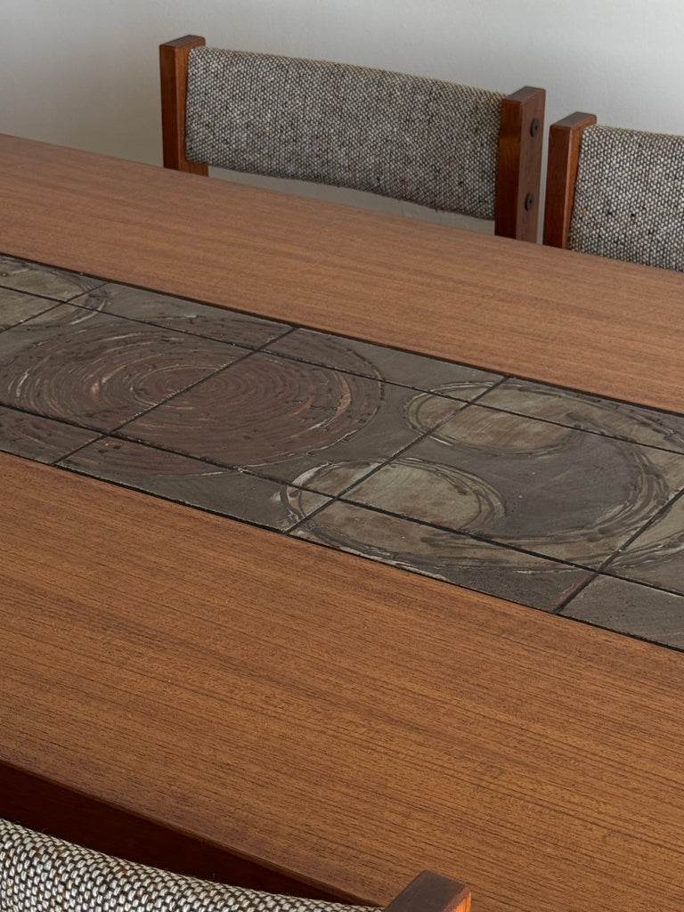 Great vintage condition. Seats 4-8 people. Drop leaves are detachable. Matching 8 chairs and credenza available and sold separately.
