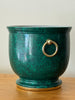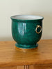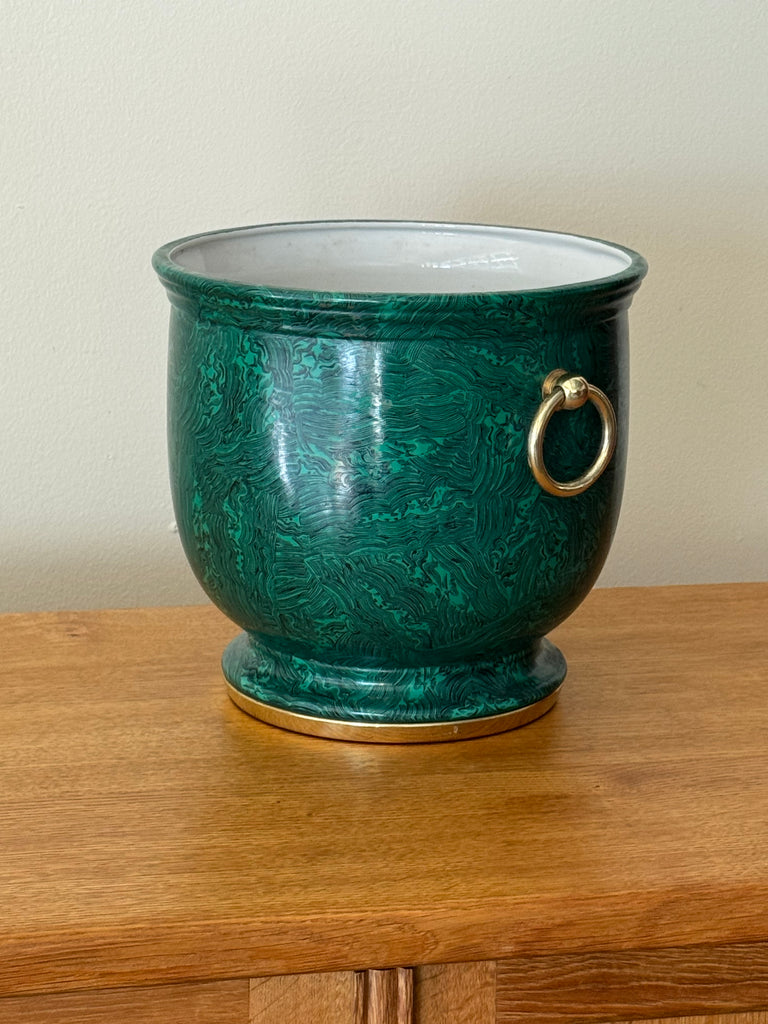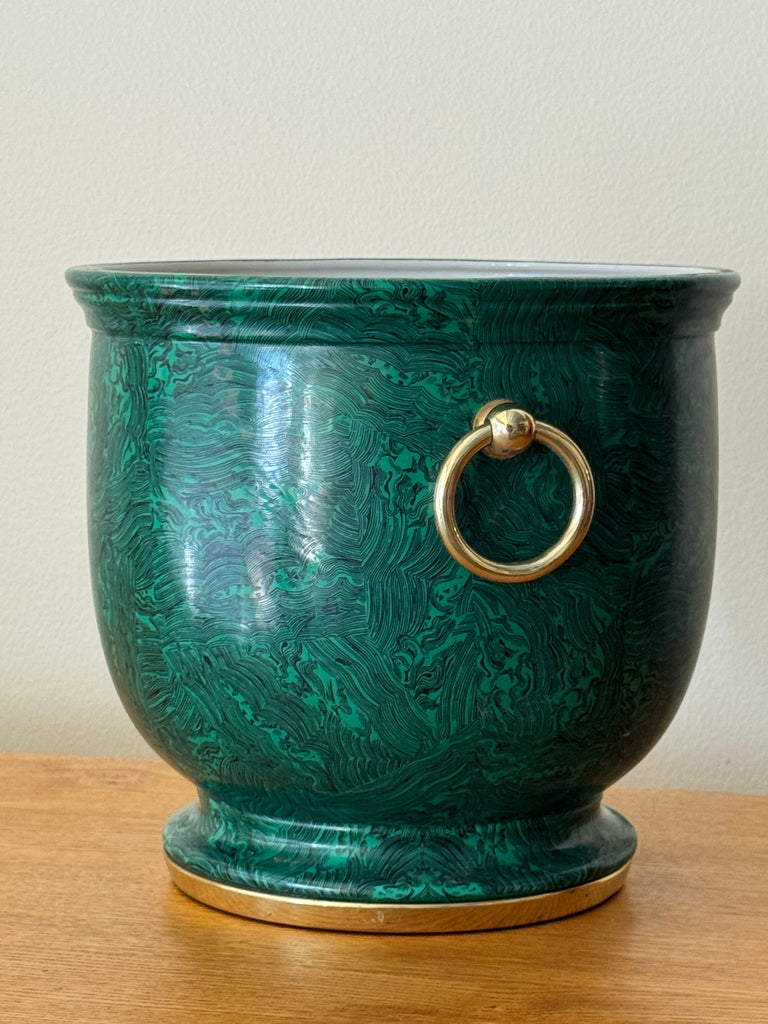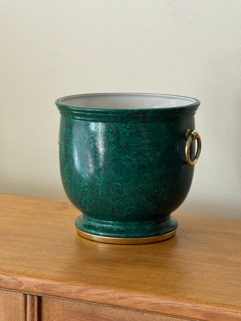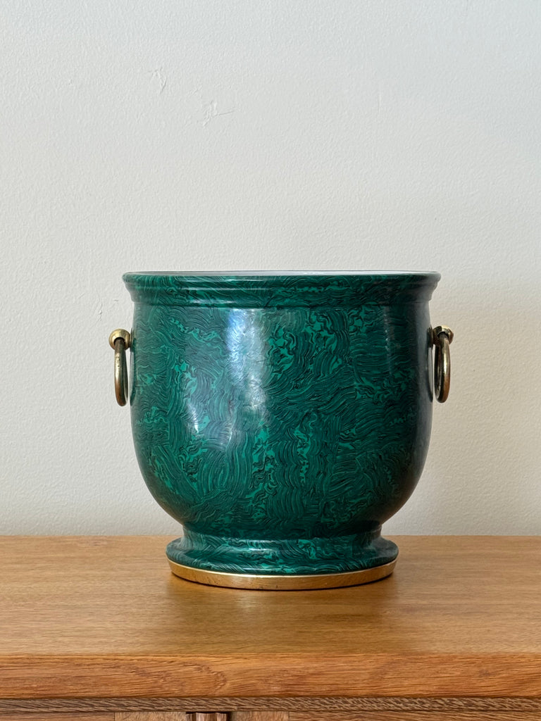 Enameled Painted Malachite Porcelain Planter with Brass circa 1970