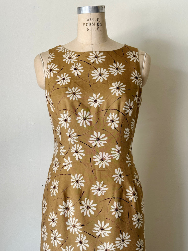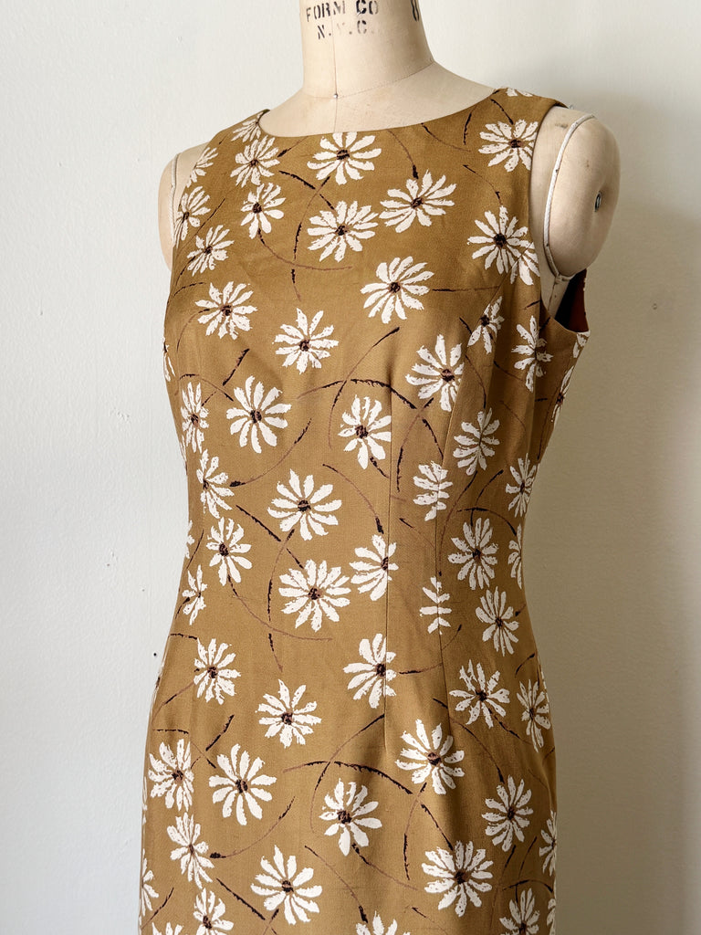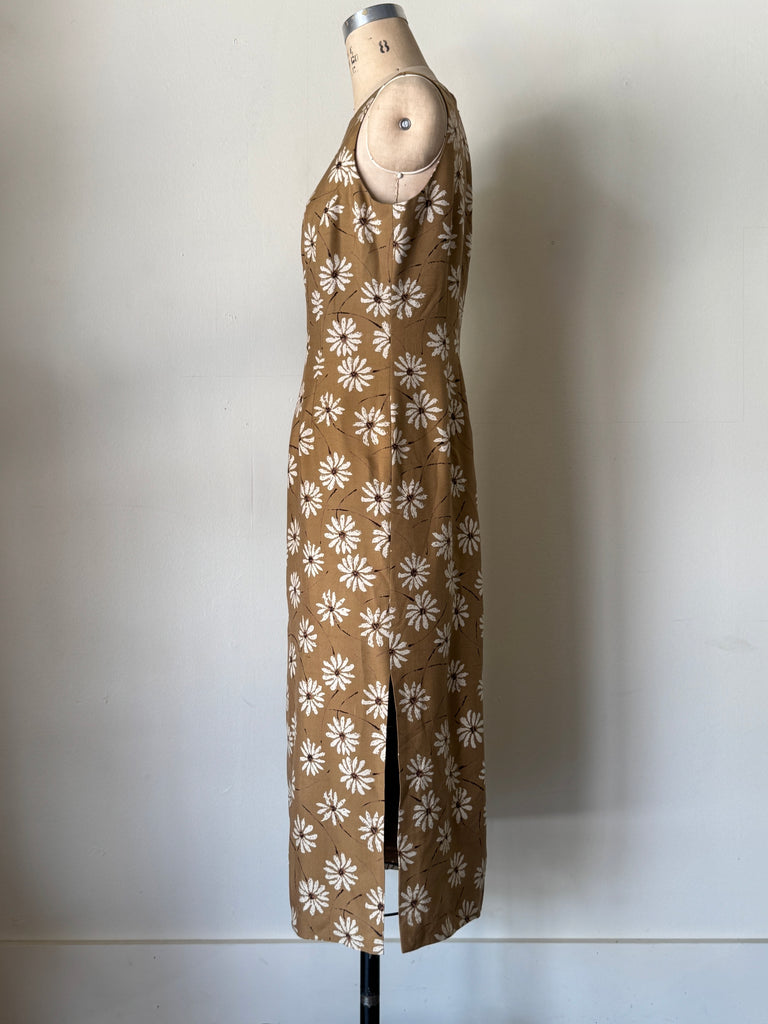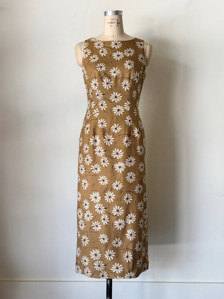 Vintage Silk Daisy Midi Dress - 8