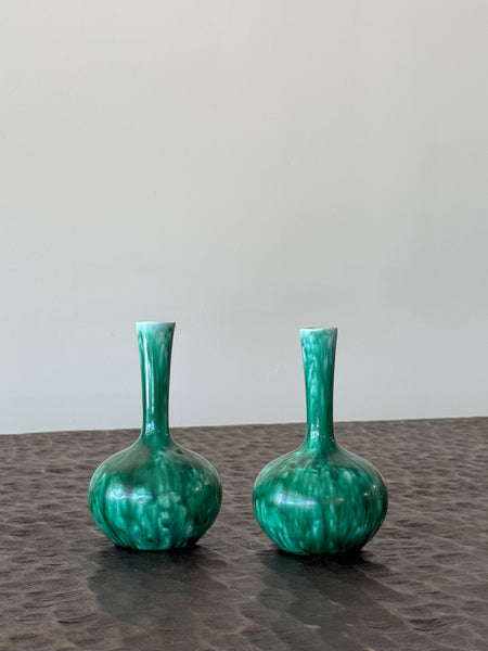 PAIR BLUE GREEN DRIP GLAZE VASES