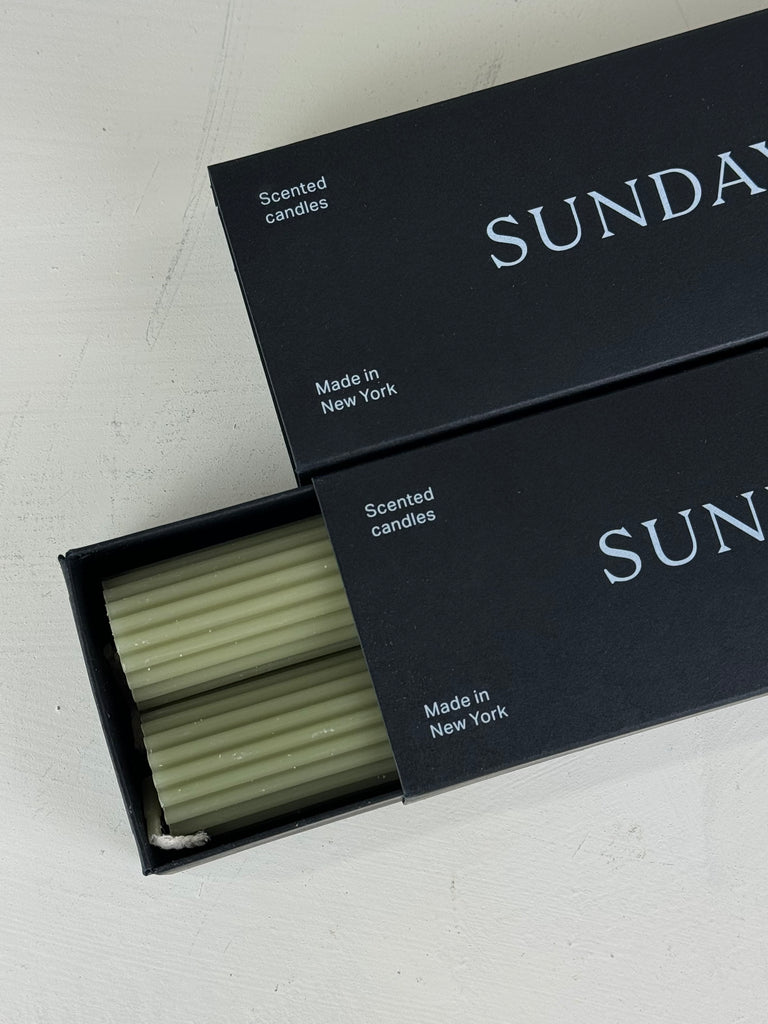 SUNDAY EDITIONSunday Edition's Roman Taper candles are formulated with essential oils, natural aromatics or plant derived scent molecules. They use a custom blend of soy-beeswax and premium cotton wicks that contain no additives or chemicals for a clean burn. Their candle colors are made from vegetable dyes and contain no hazardous solvents or toxins. Packaging is made with sustainable and biodegradable materials.