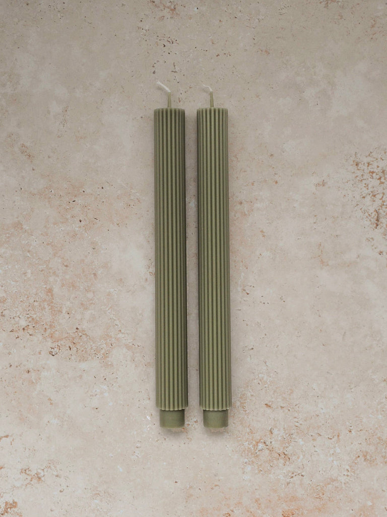 Set of two • Soy-beeswax blend • Vegetable dye • Cotton wick • Length: 10" • Weight (each): 4.5oz | 255g • Est. burn time: 5 - 8 hours