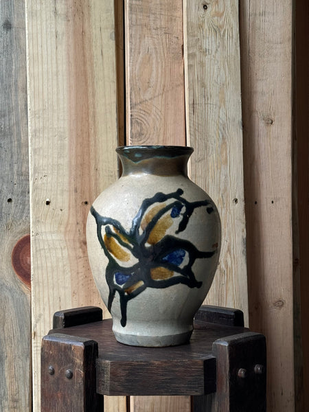 ANTIQUE PAINTED STONEWARE VASE