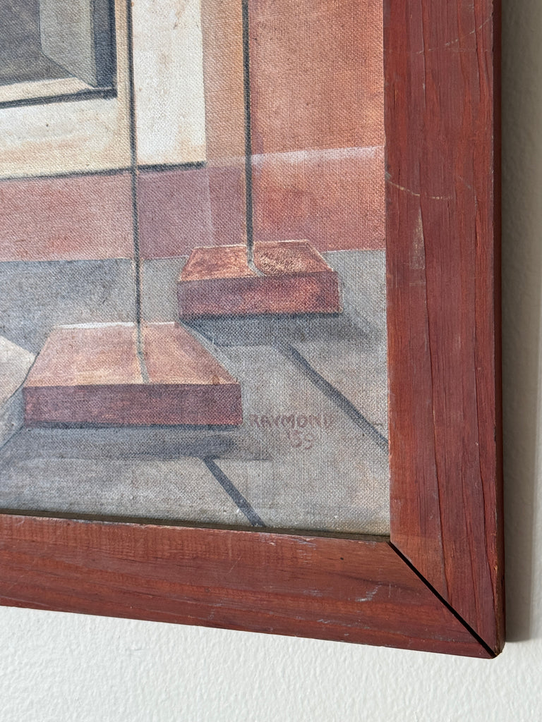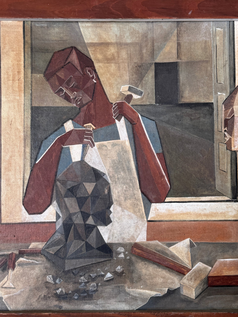 1959 Original Framed Cubist Painting “Sculptor at Work”