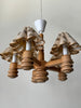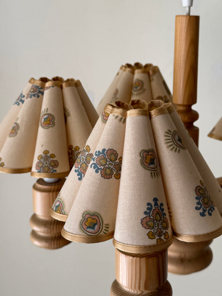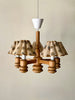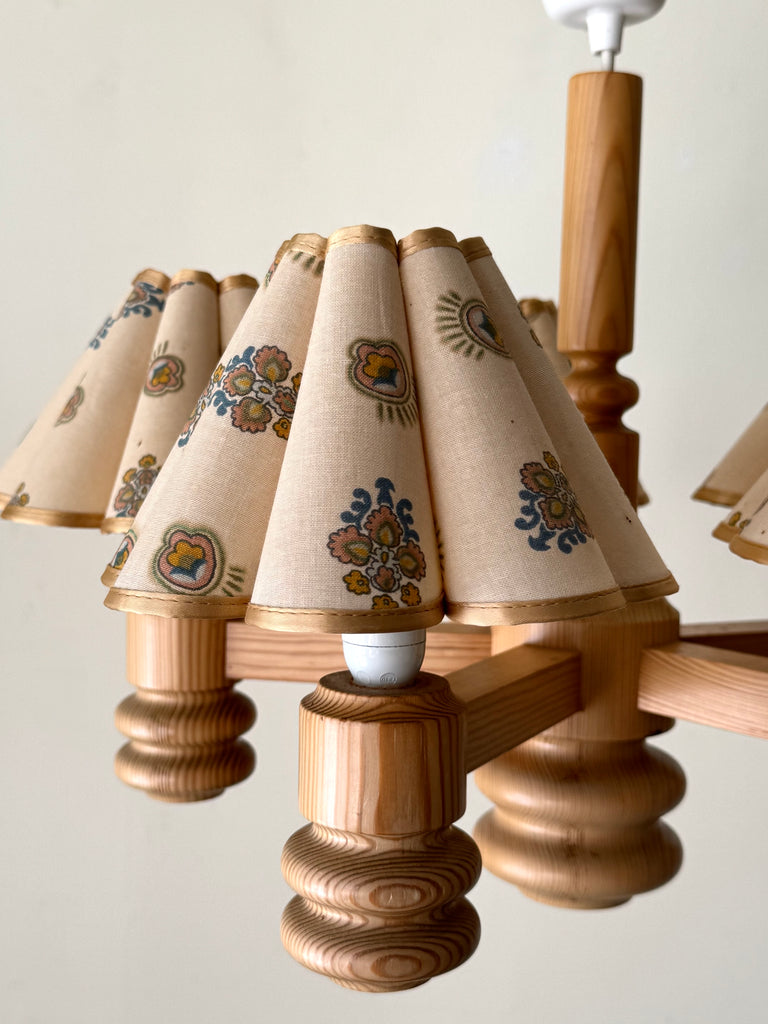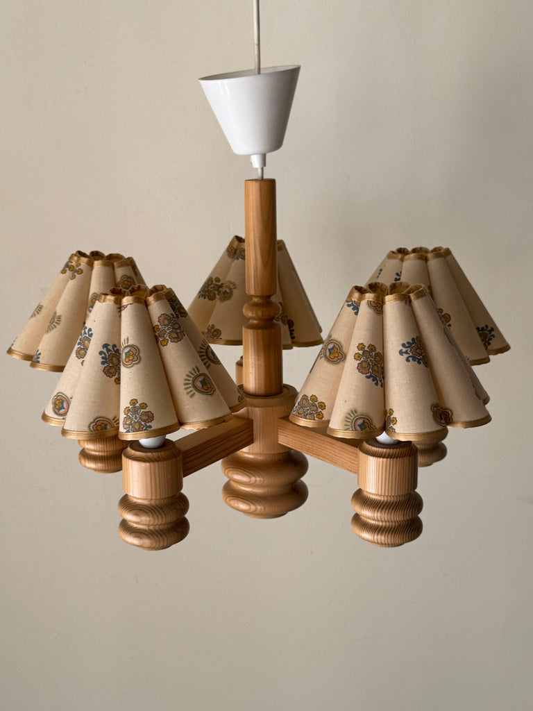 1970s Swedish Pine Chandelier With Floral Scalloped Shades