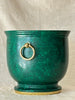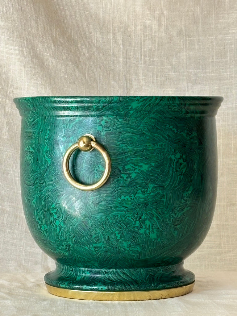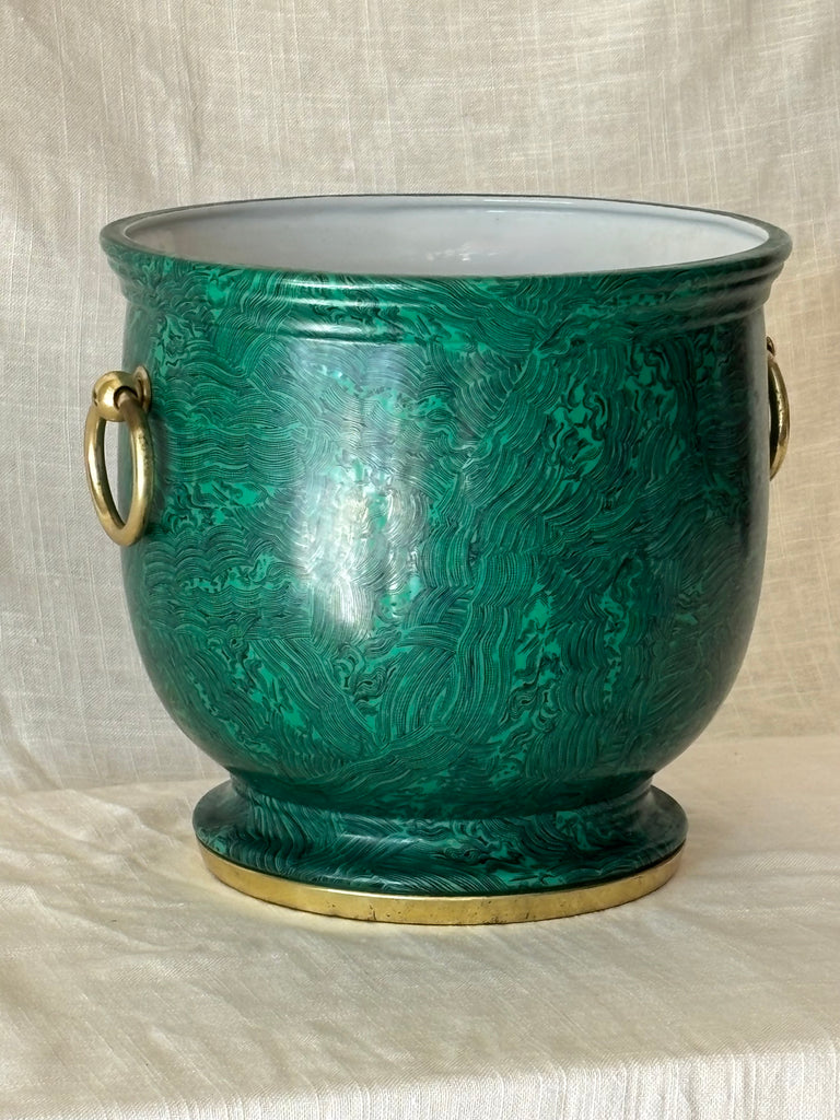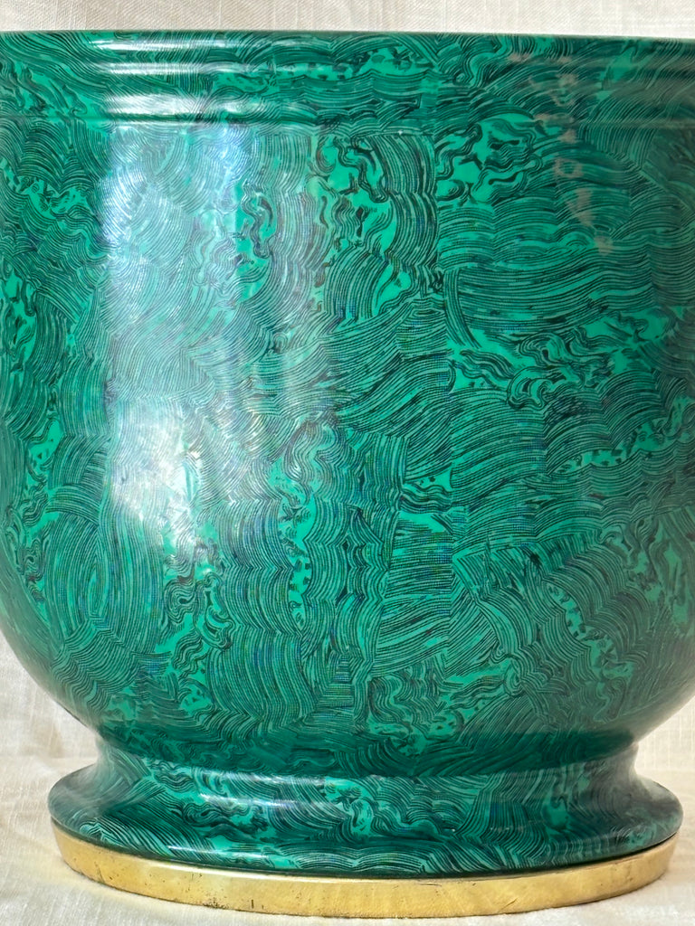 Enameled Painted Malachite Porcelain Planter with Brass circa 1970