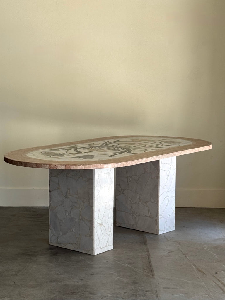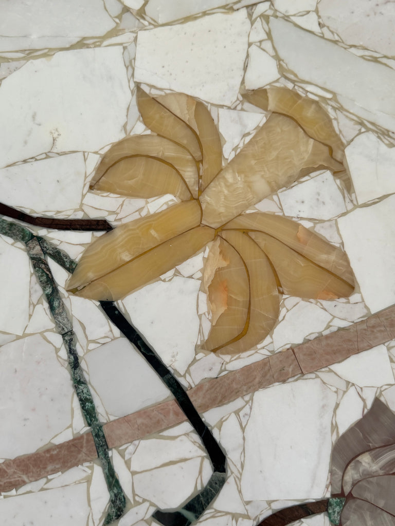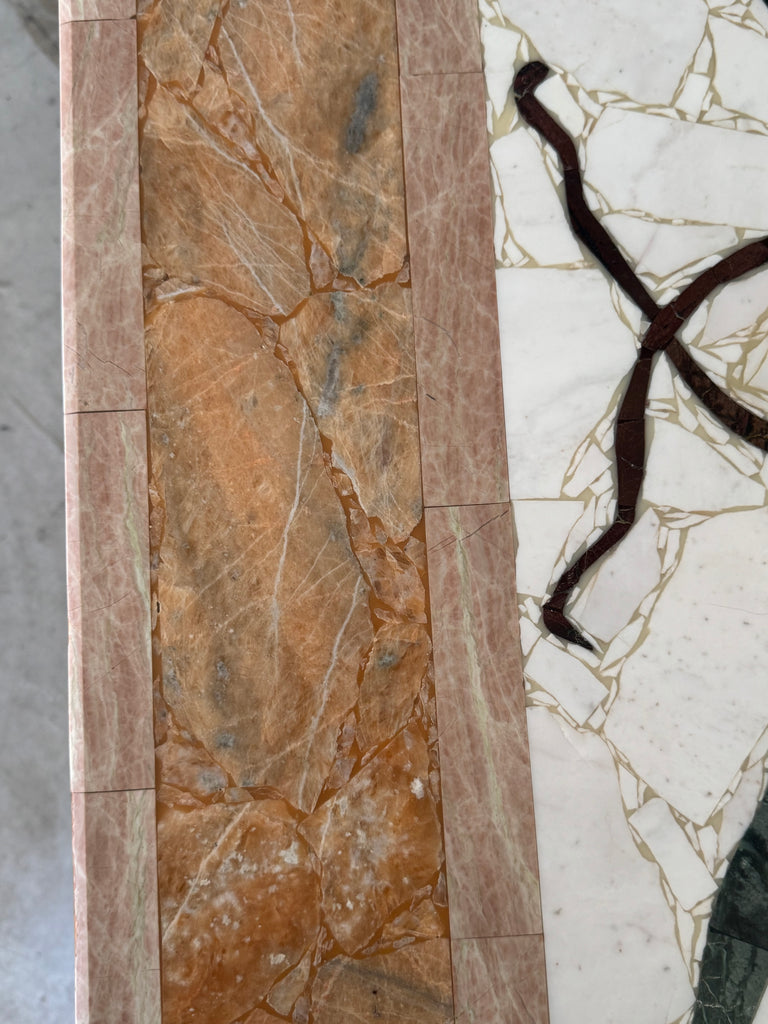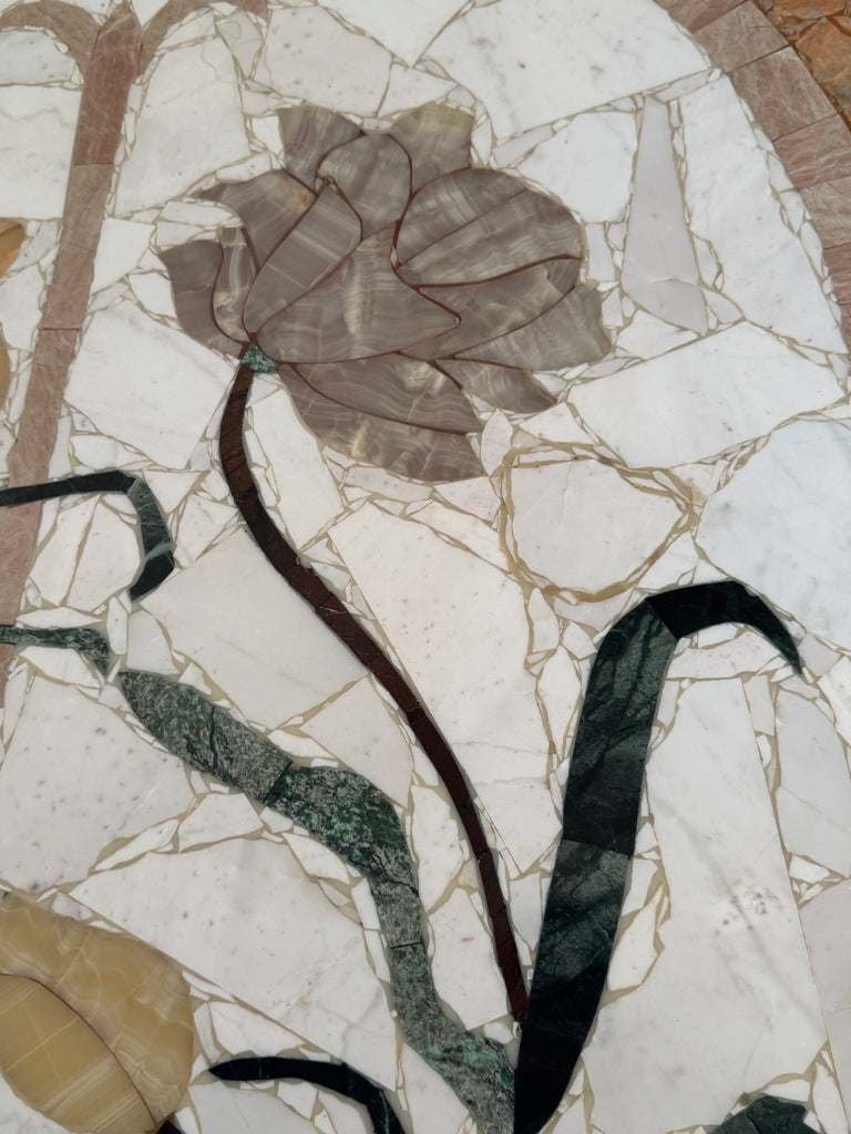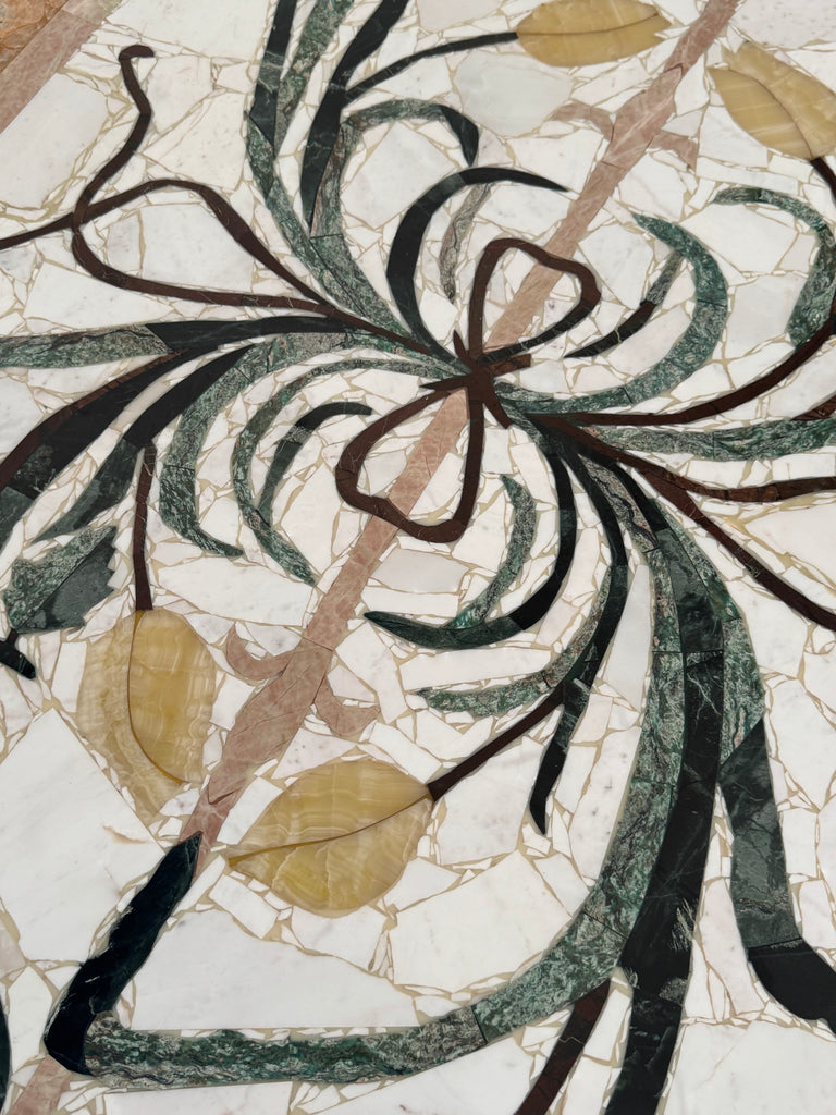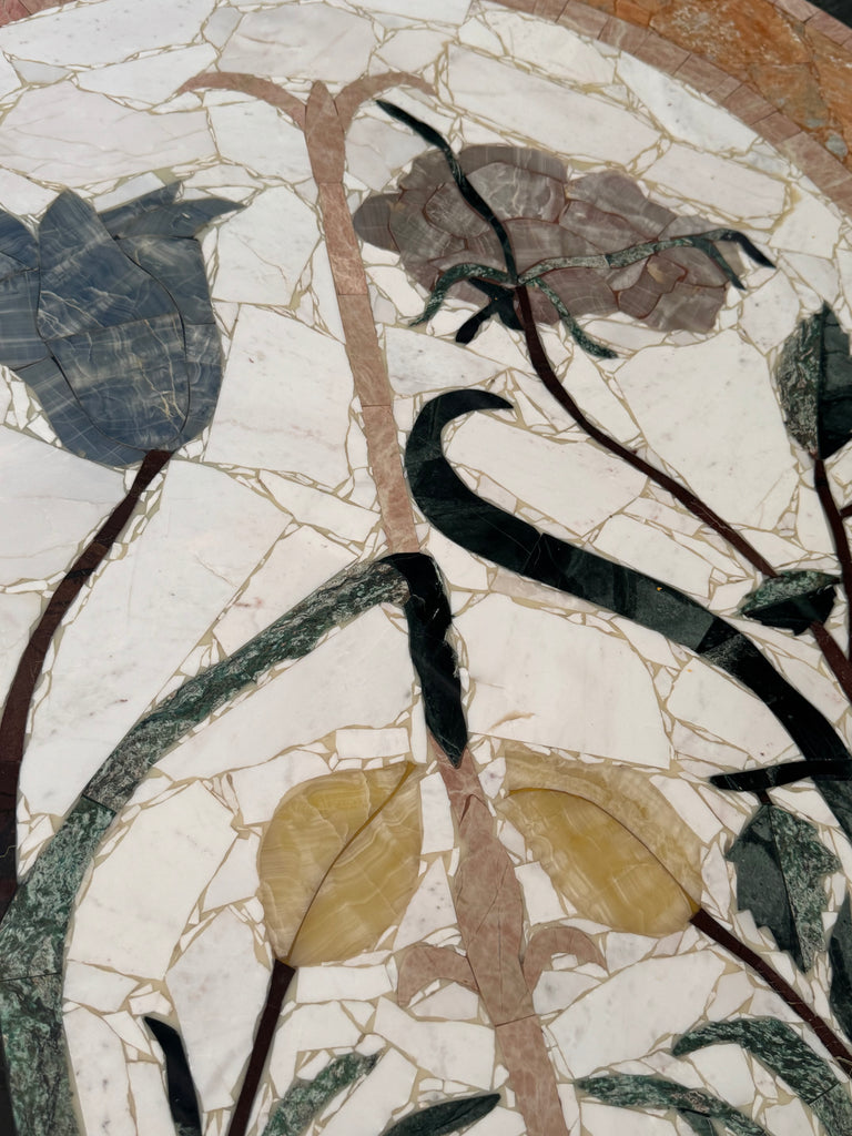 VintageAbsolutely incredible delicate mosaic marble table with alabaster flowers. A truly one of a kind piece.
